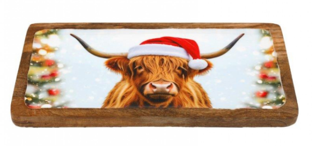 Das Emailletablett mit Hochlandrindmotiv (40 × 19 cm) ist ein außergewöhnliches Deko- und Serviertablett für die Winter- und Weihnachtszeit. Das hochwertige Tablett zeigt ein charmantes Hochlandrind mit roter Weihnachtsmütze und langen, imposanten Hörnern – ein humorvoller und zugleich stilvoller Akzent für jede Einrichtung.