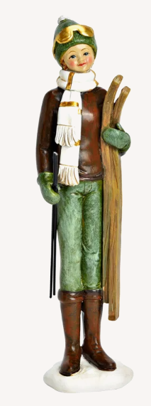 „Diese detailreich gestaltete Weihnachtsfigur Kind mit Skiern verleiht Ihrer Winter- und Weihnachtsdekoration einen verspielten Charme.