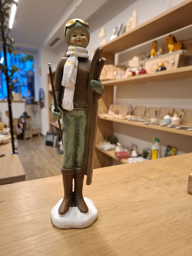 Ob als Dekoration auf dem Fensterbrett, im Regal oder als Teil einer weihnachtlichen Landschaft – das fröhliche Kind auf Skiern zaubert ein Lächeln in jedes Zuhause.