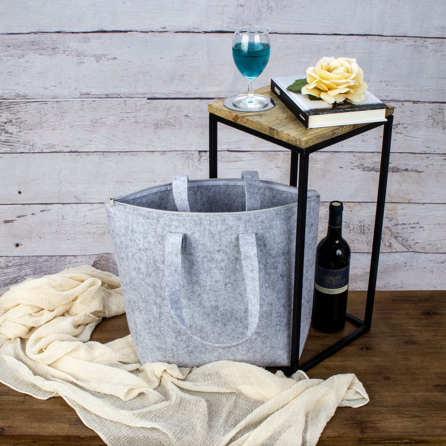 Filz-Tasche hellgrau mit Reißverschluss h=35cm b=45cm t=13cm