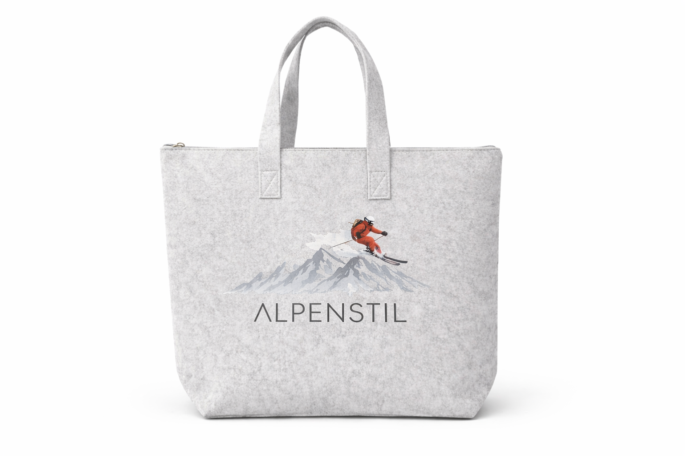 Hergestellt aus grauem Filz, begleitet sie dich zuverlässig durch deinen Alltag – vom Büro über den Einkauf bis hin zu spontanen Abenteuern. Ob du Skifahrer, Bergliebhaber oder einfach Fan alpiner Designs bist: Das dynamische Motiv eines Skifahrers, der elegant einen schneebedeckten Gipfel hinabgleitet, inspiriert zu neuen Abenteuern – jeden Tag.