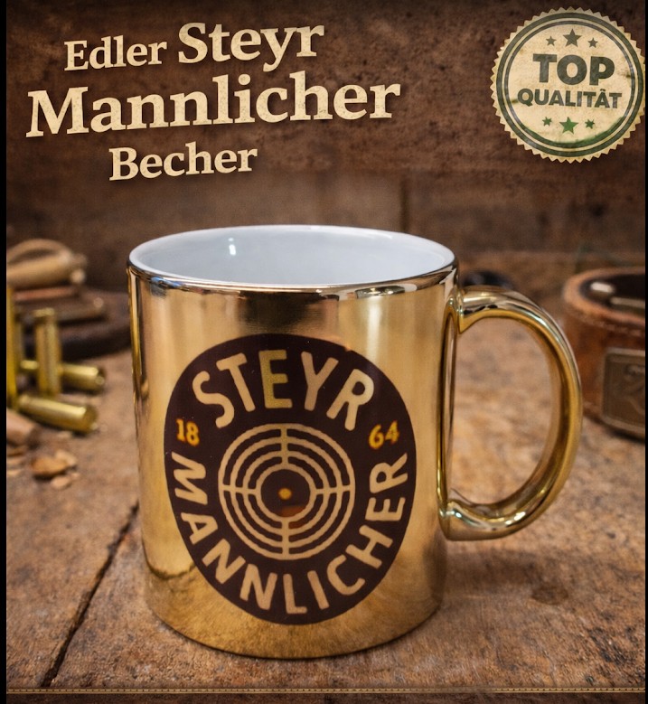 Dieser hochwertige Becher mit glänzender Goldoptik ist ein echter Blickfang für Fans von Steyr Mannlicher, Jagd- und Maschinenkultur. Das markante Logo-Design kombiniert Tradition, Präzision und Stil – perfekt für Kaffee, Tee oder Werkstattpausen.