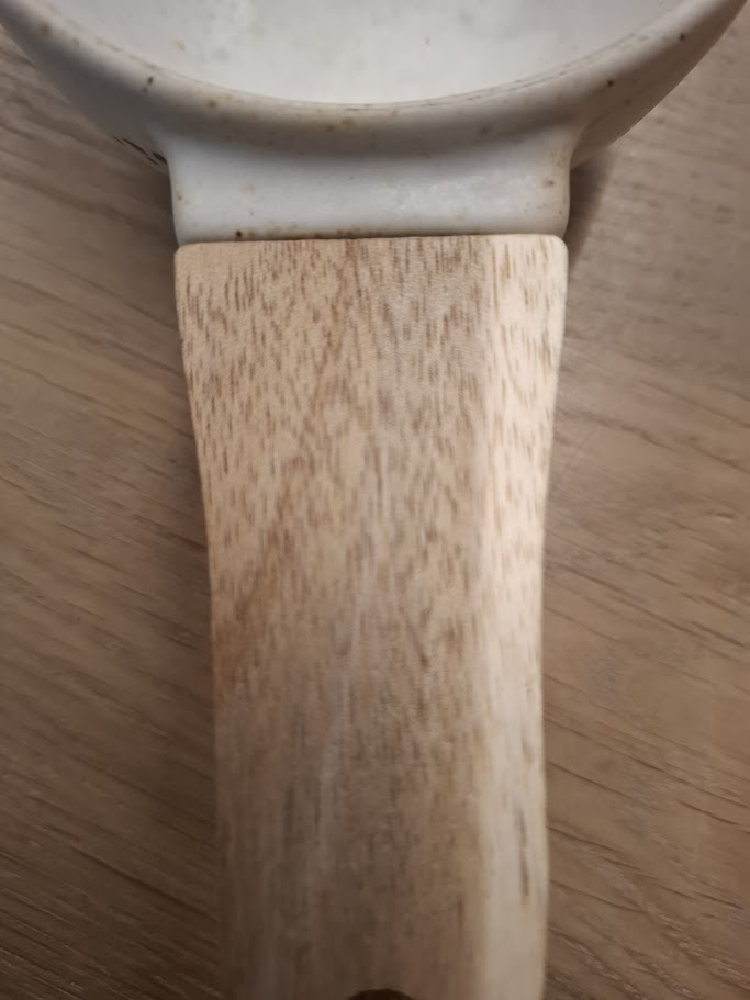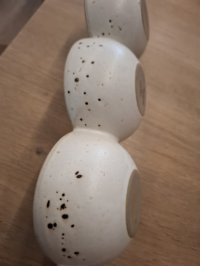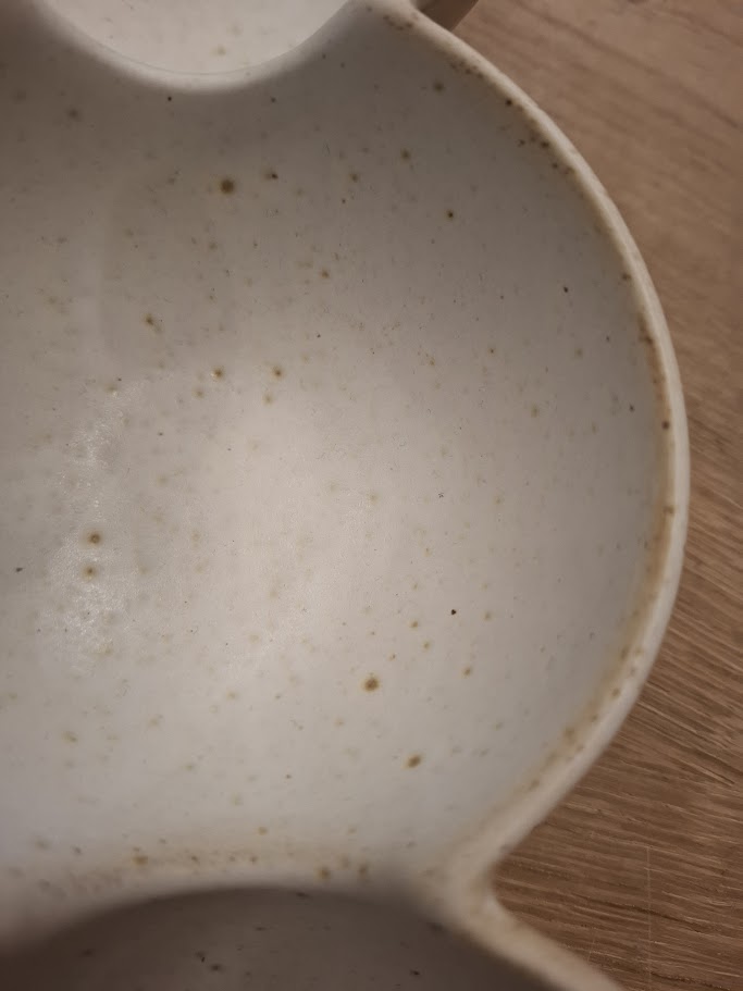 Wunderschöne reaktive beige Glasur mit Sprenkeldetails.