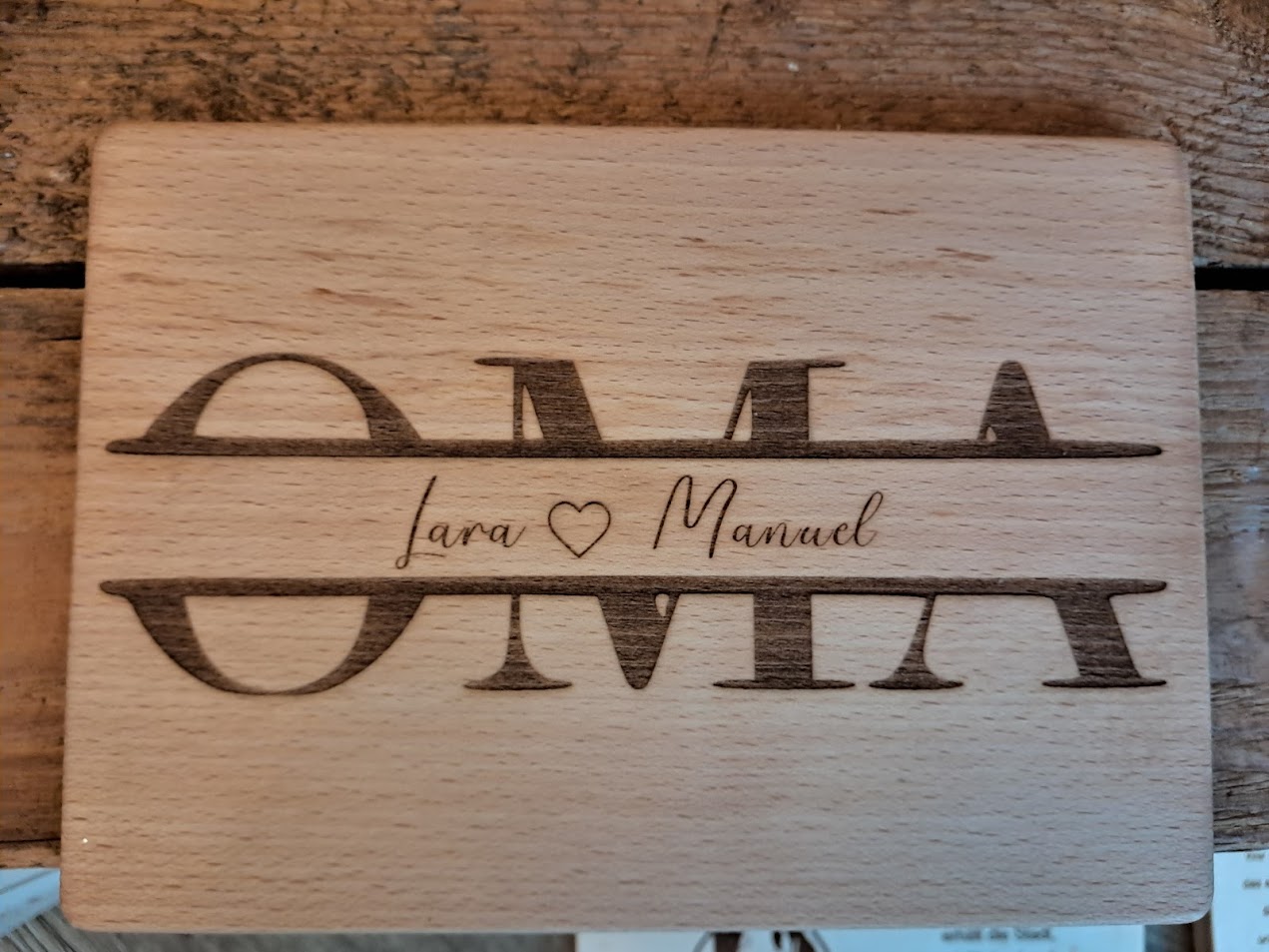 Ob zum Geburtstag, Weihnachten, Muttertag oder als kleine Überraschung zwischendurch – mit diesem personalisierten Brett schenken Sie ein Stück Erinnerung und Wertschätzung. Die liebevolle Gravur sorgt dafür, dass Oma sich immer an ihre Familie erinnert fühlt.