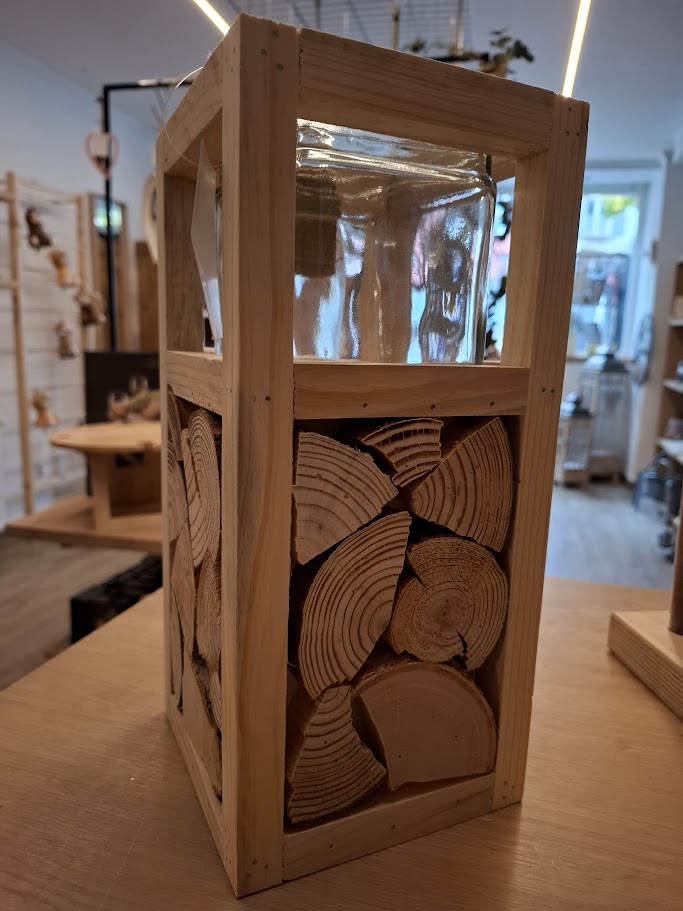 Diese wunderschöne Laterne aus Holz und Glas bringt rustikalen Charme und stimmungsvolles Licht in dein Zuhause. Mit ihrem klassischen Vintage-Design und den klaren Glasfenstern eignet sie sich ideal für Stumpenkerzen, Teelichter oder LED-Kerzen.