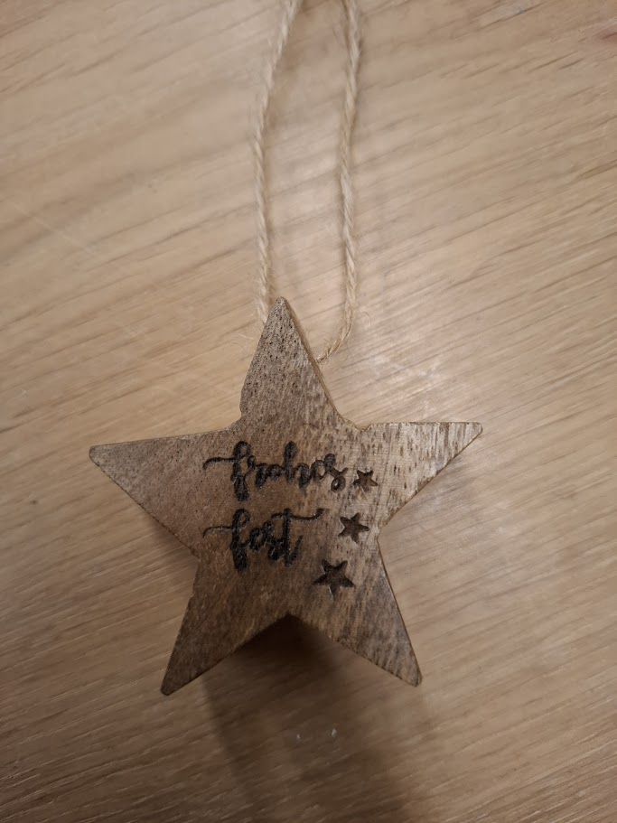 „Dieser robuste Sternhänger mit der Aufschrift „Frohes Fest“ ist ein wunderschönes Detail für das Geschenk für Weihnachten.