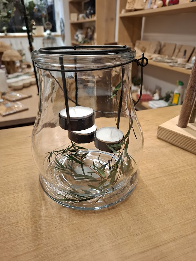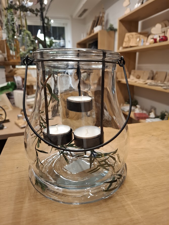 Diese Glaslaterne hat einen Metalleinsatz für 3 Teelichter. Das macht ein wundervolles Licht und dank dem einfachen ein- und herausgeben von dem Metalleinsatz, ist die Laterne sehr leicht sauber zu halten und man kann sie, je nach Jahreszeit dekorieren. Viellleicht stellen Sie sie im Sommer mit Rosmarin und Thymian auf den Gartentisch und im Herbst mit einigen Zweigen auf die Fensterbank. Im Winter dann mit einem Tannenzweig und kleinen Zapfen, ist diese Laterne ein Blickfang im Fenster und spendet in den kühlen Monaten warmes Licht, nach dem sich die Menschen so sehnen.