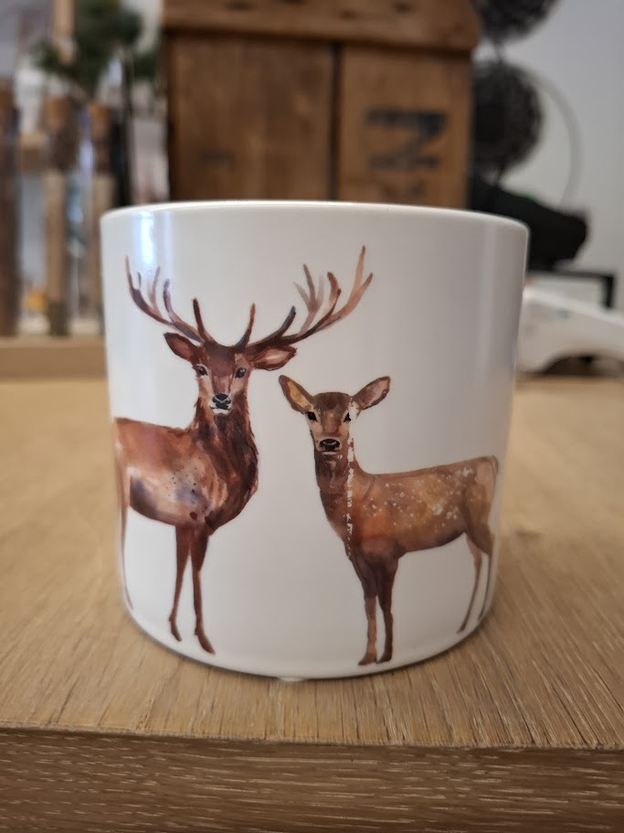 Ob als Dekoration für Fensterbank, Tisch oder Regal – dieser stilvolle Blumenübertopf mit Geweih-Motiv setzt Ihre Pflanzen perfekt in Szene und bringt ein Stück Natur in Ihre Wohnräume.