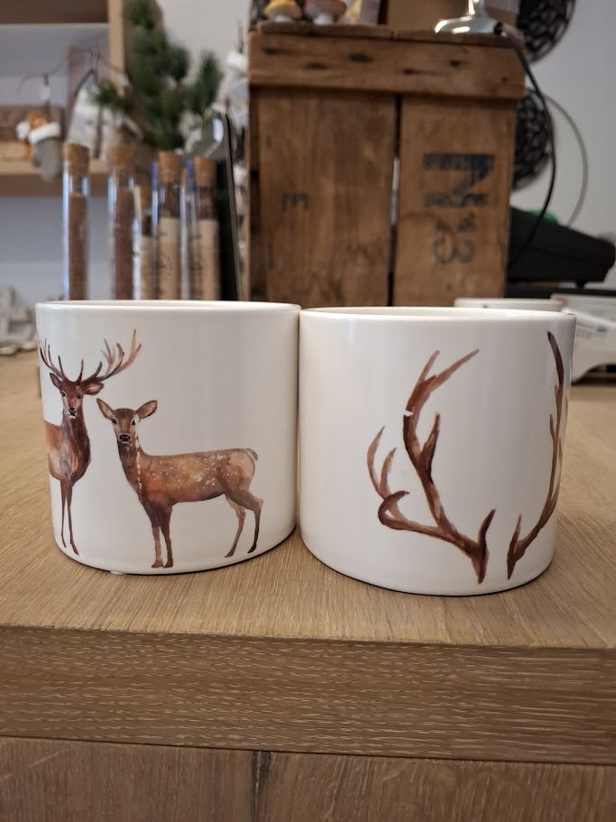 ✔ Farbe: Weiß mit braunem Geweih-Motiv