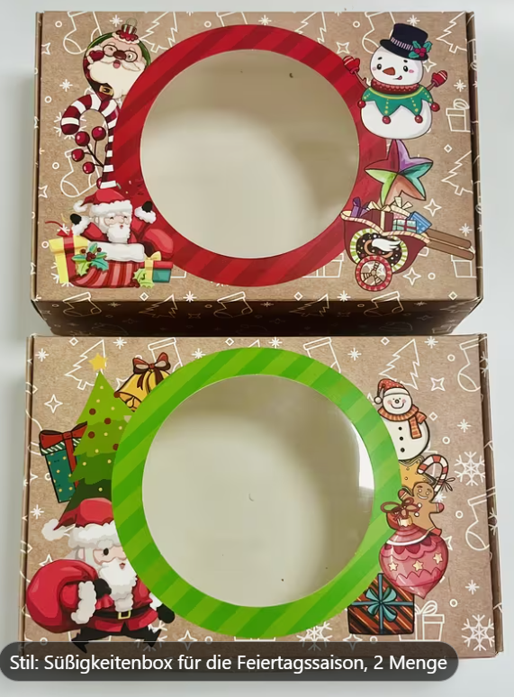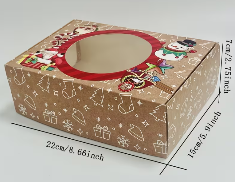18 Stück, Weihnachts-Kraftpapierboxen mit Santa Claus Motiv, ‚Frohe Festtage‘ Geschenkverpackung inkl. DIY-Anhänger & transparentem Fenster – Partygeschenke für kleine Präsente & Deko zum Weihnachtsfest.