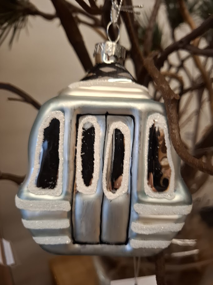 „Dieser liebevoll gestaltete Weihnachtsbaumanhänger in Form einer Gondel mit Skiern außen ist ein echter Hingucker für Ihren Weihnachtsbaum.